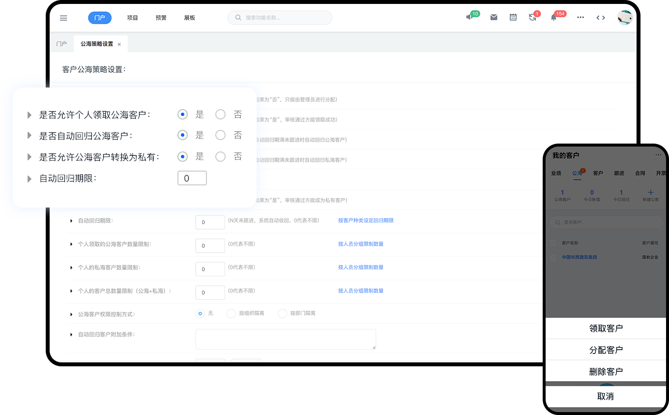 从线索获取-分配到领取-回归/转换的全链条智能管控。 支持第三方营销系统集成,自动导入客户线索。