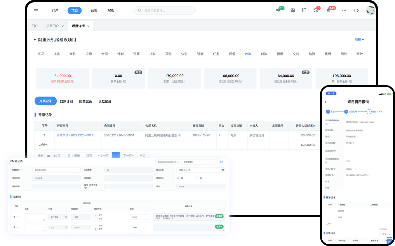 开票申请、回款计划、回款记录全链管理;