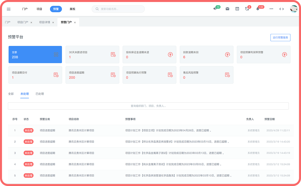 智能监控从商机报备到转化、成交、售后各阶段风险点,并自动向相关责任方发布预警提示。