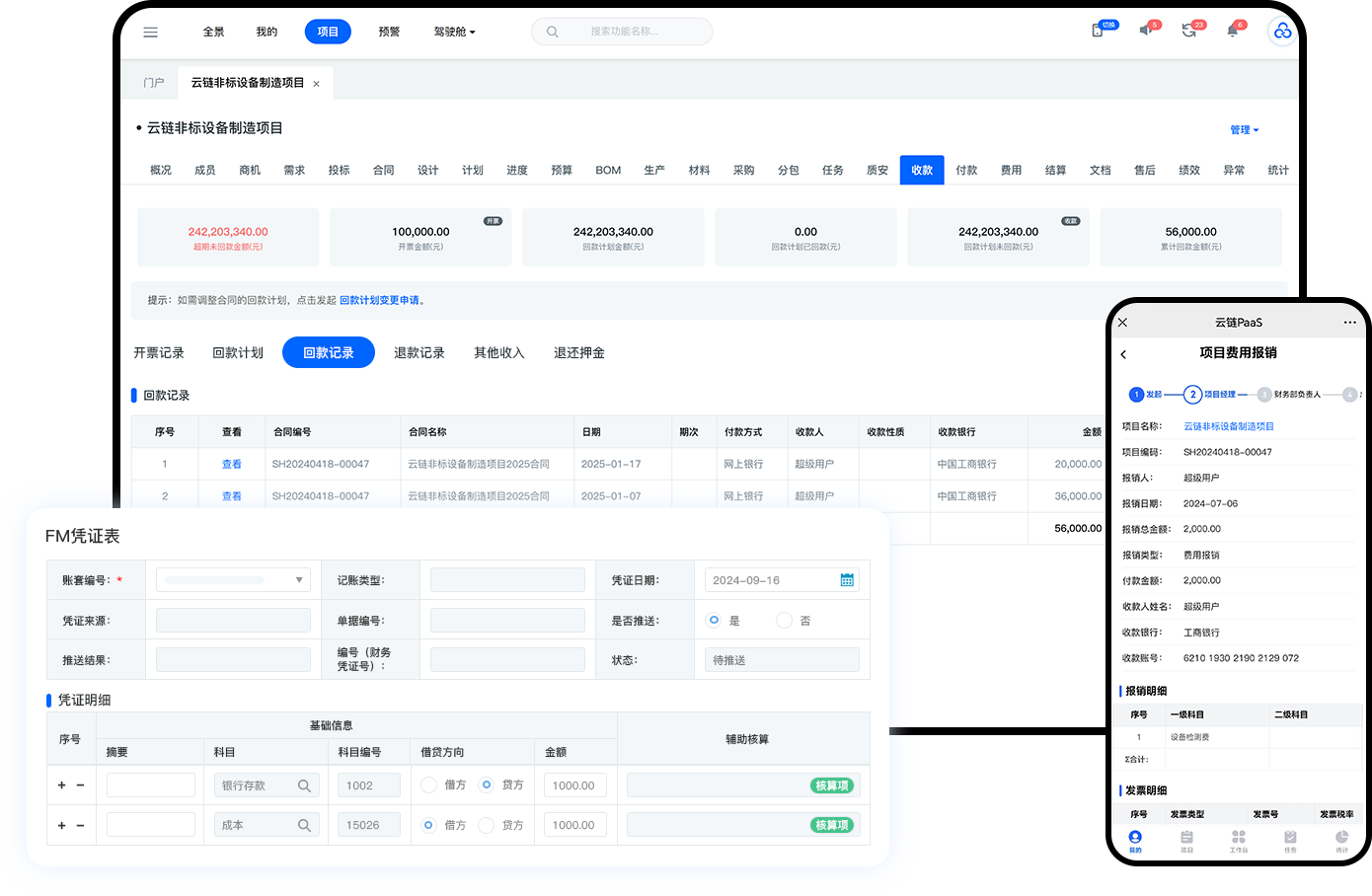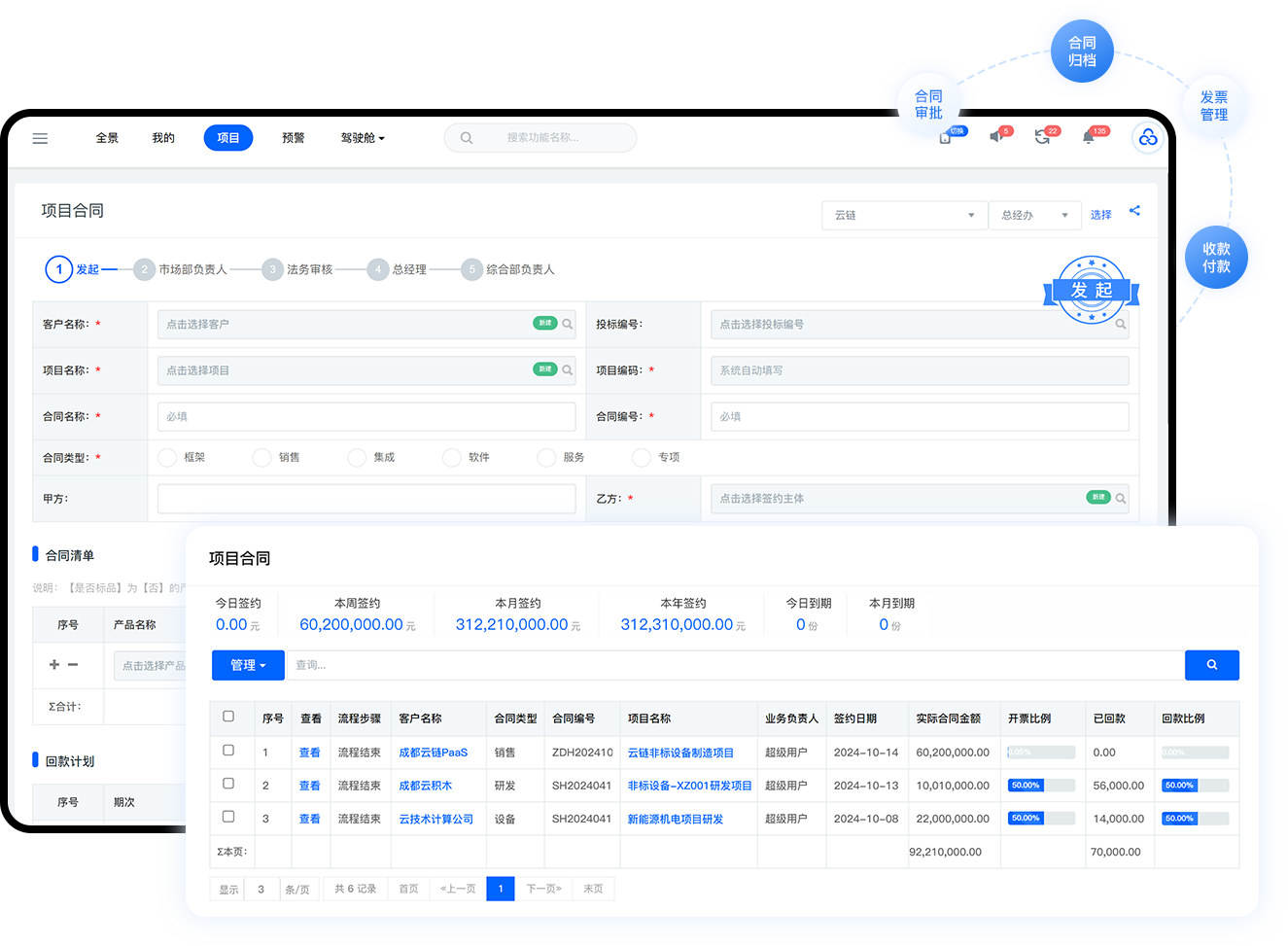 开票申请、回款计划、回款记录全链管理;