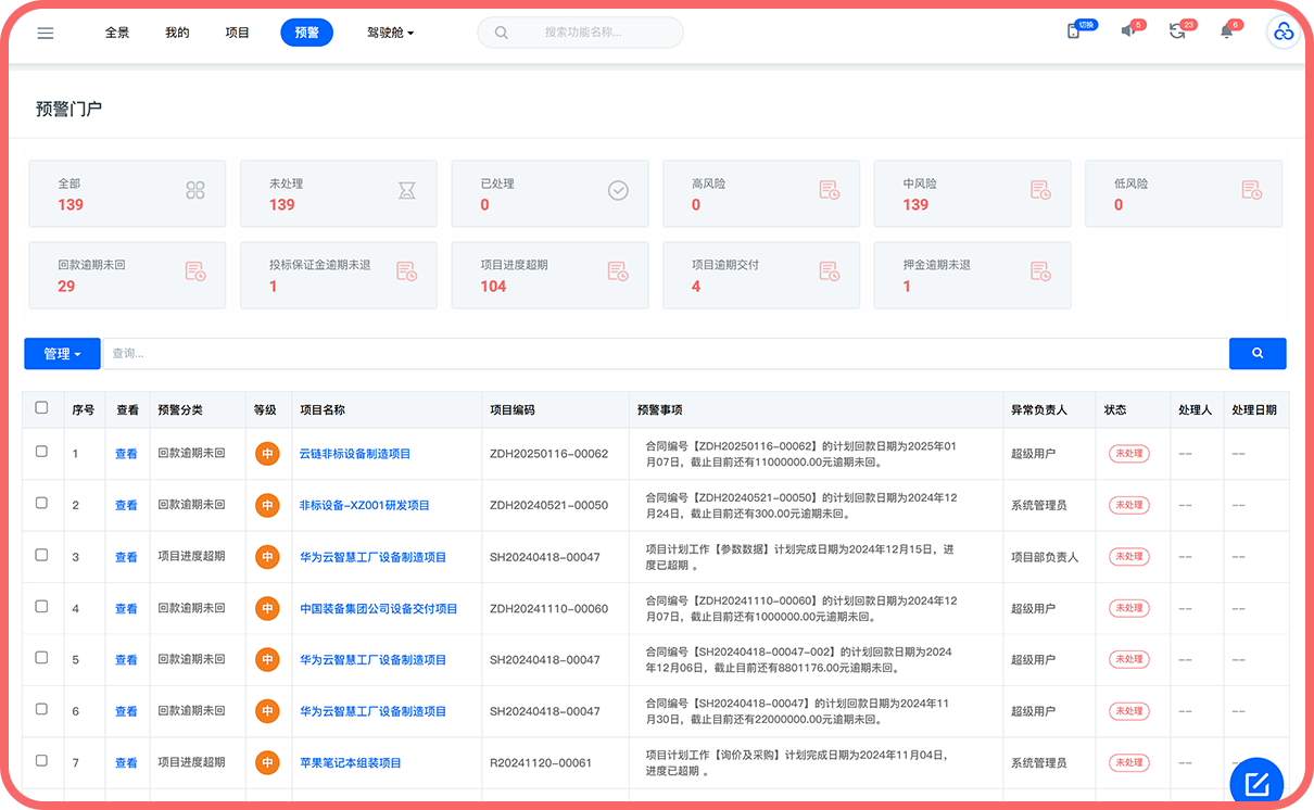 直观呈现项目风险及处理状态,自动追踪项目全过程风险,自动提醒相关责任人。支持自定义设置提醒规则。