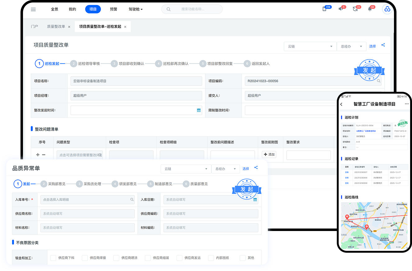 包含原材料、生产过程、产成品以及项目全过程质检管理。