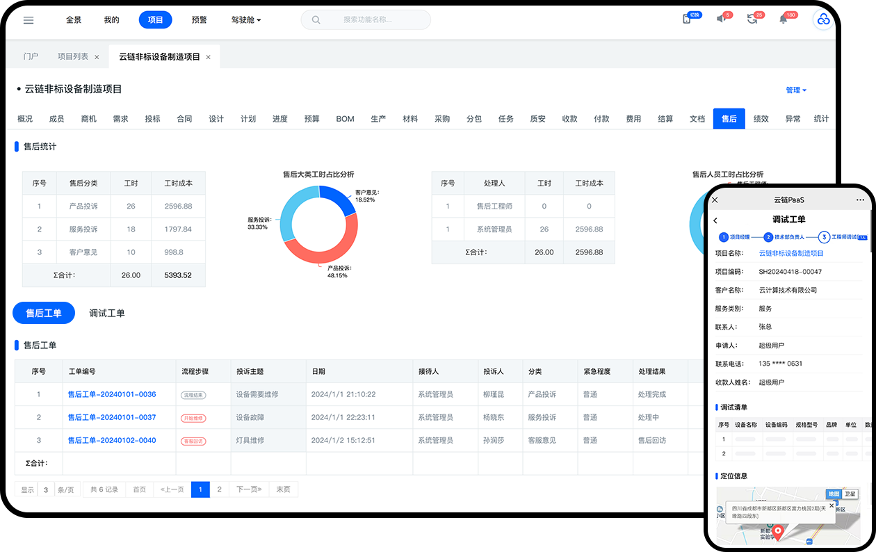 研发、销售、设计、生产、安装、交付、售后全周期数字化管理