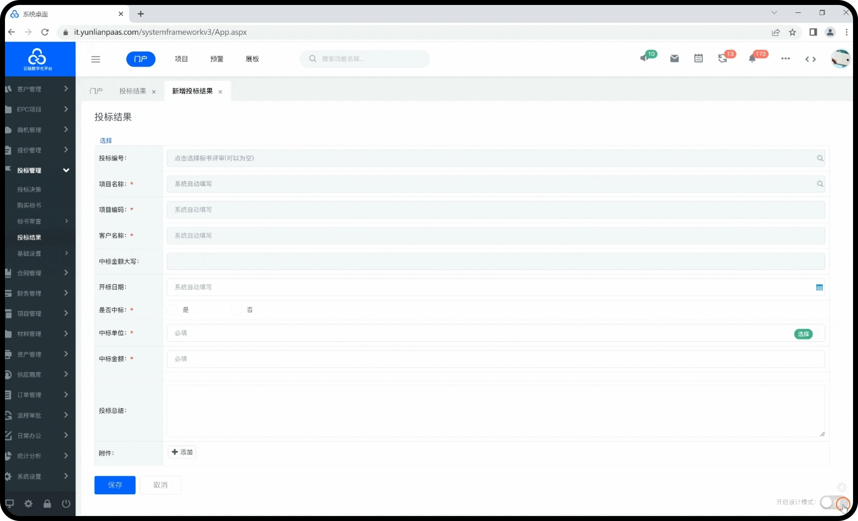 通过云链EPMS项目管理系统,实现对明通集团项目全过程数字化管理,并通过不同角色工作门户建设,实现对内部20多个子公司、外部甲方及乙方的统一化、精细化管理。