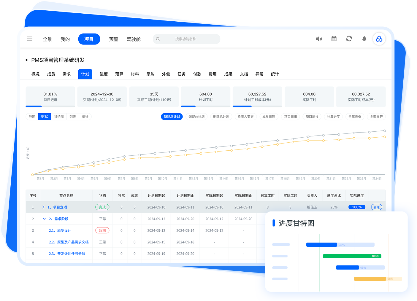 研发项目全周期可视化,进度成本实时掌控,项目团队高效协同