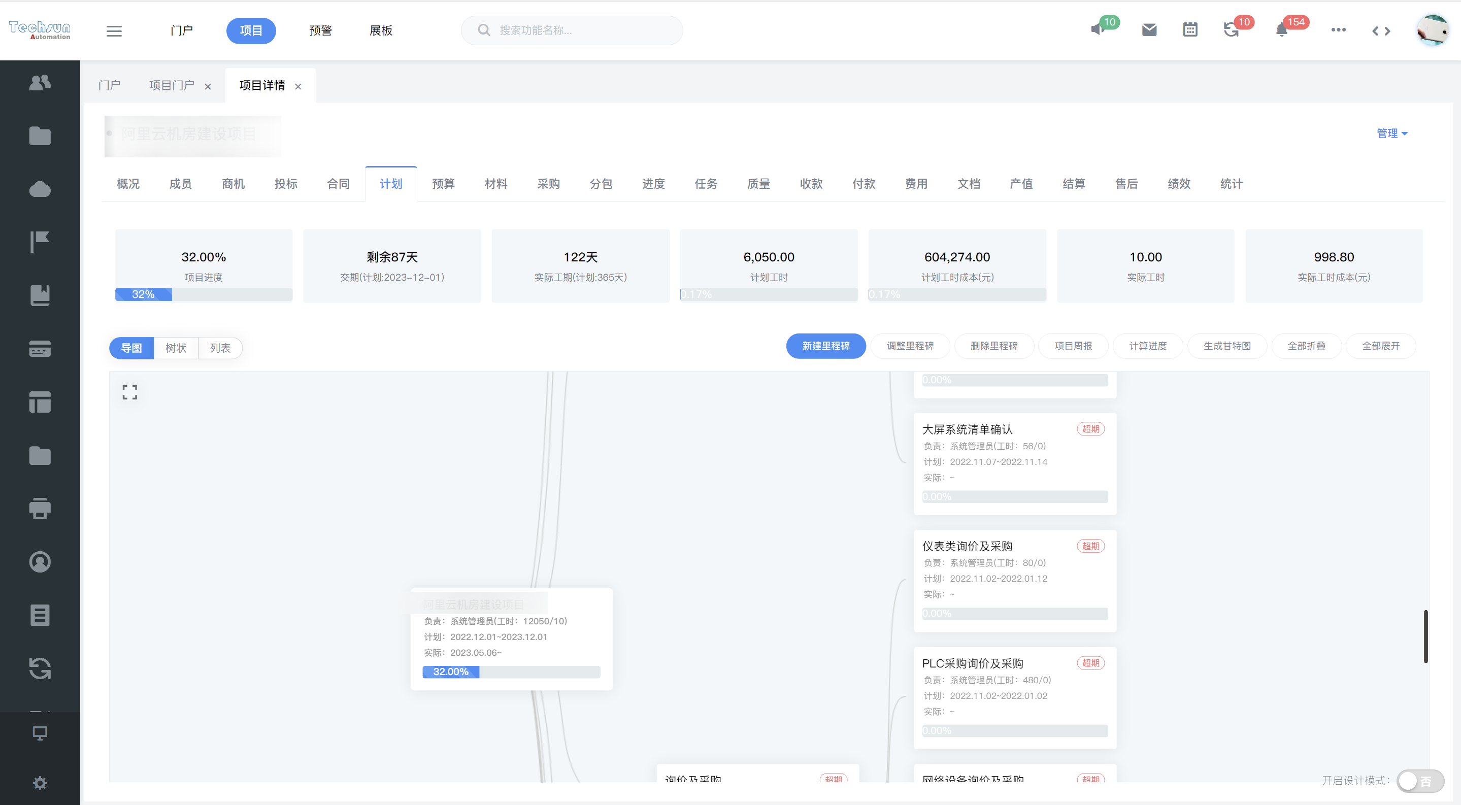 深圳市天圳自动化技术有限公司(以下简称“深圳天圳”),在企业运营管理上是十分规范的,其规模及发展都可算是行业头部,具备完善的运营管理制度。随着企业不断发展壮大,书面管理制度的执行,依然靠人的自觉性,显然无法适应大规模企业管理需求。云链团队设计数字化系统解决方案,根据深圳天圳项目特点,核心采用标准里程碑计划+个性化定制预算功能,设计打造企业智能化的项目统一监管平台。